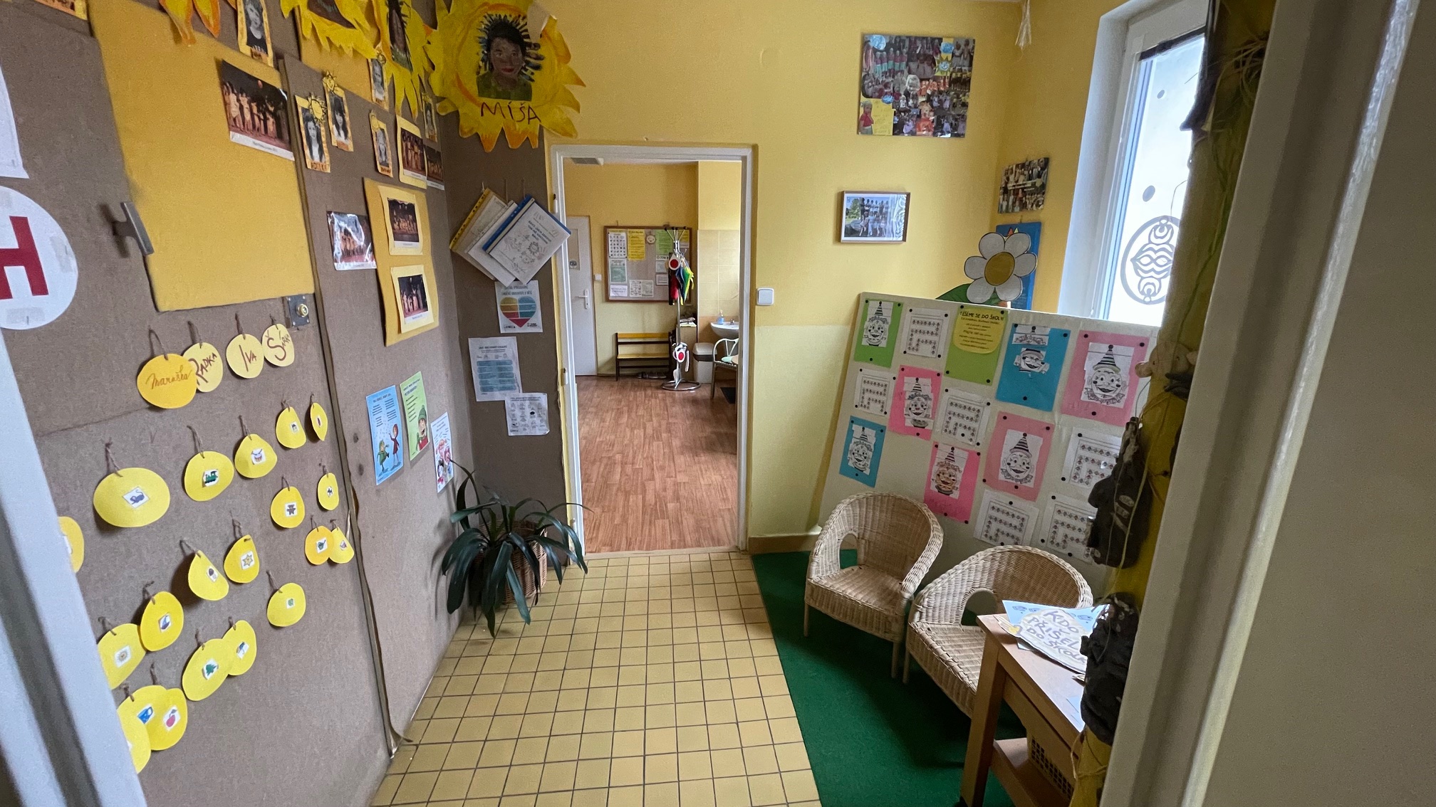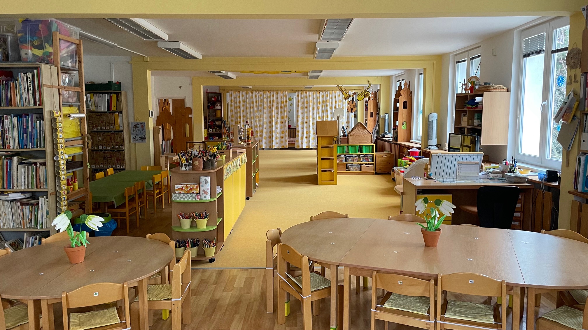Jak už název napovídá, třída je laděna do sluníčkově žluté barvy. Na stropě herny máme velké slunce – místo, kde se setkáváme k povídání, plánování i řešení všeho potřebného. Často u nás uslyšíte: „Sejdeme se pod sluníčkem.“