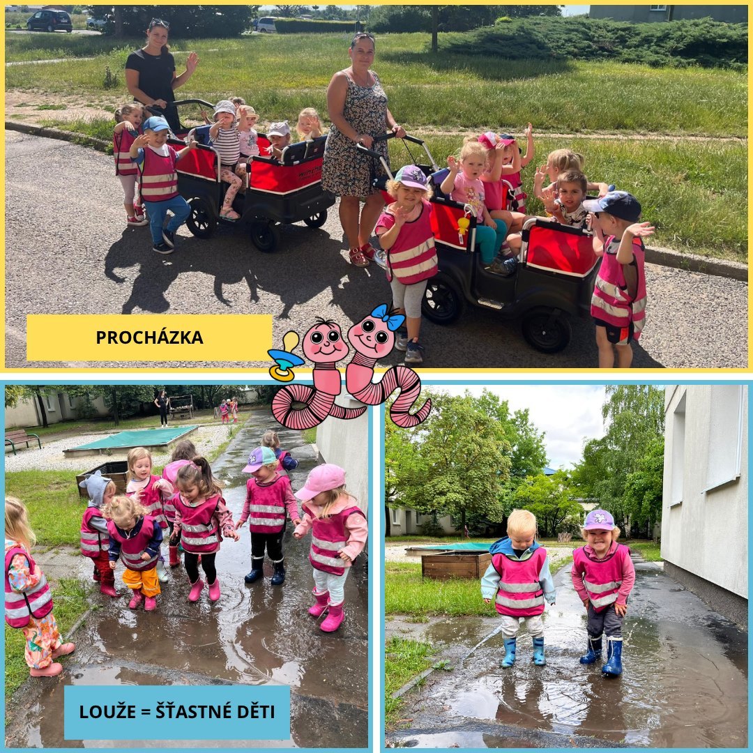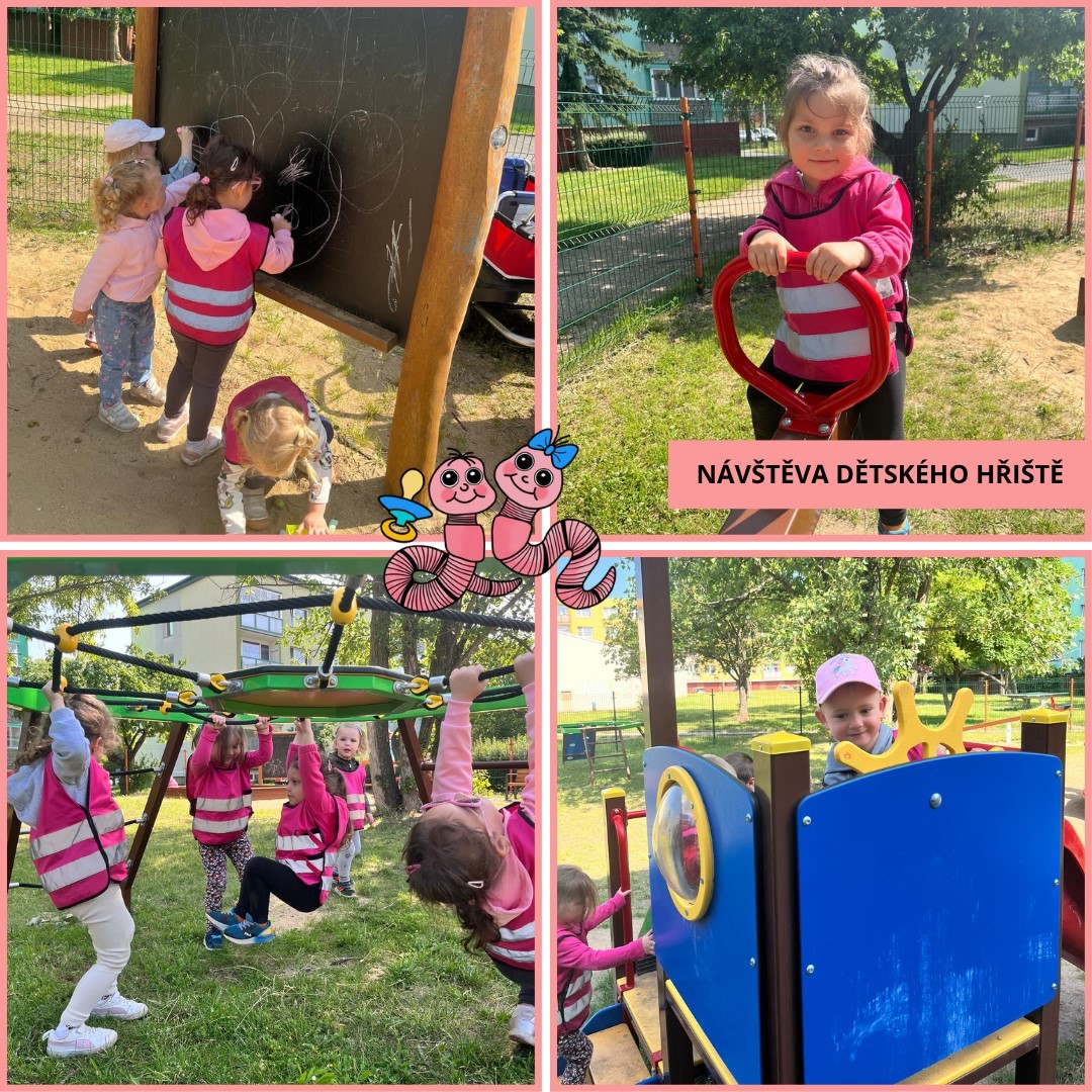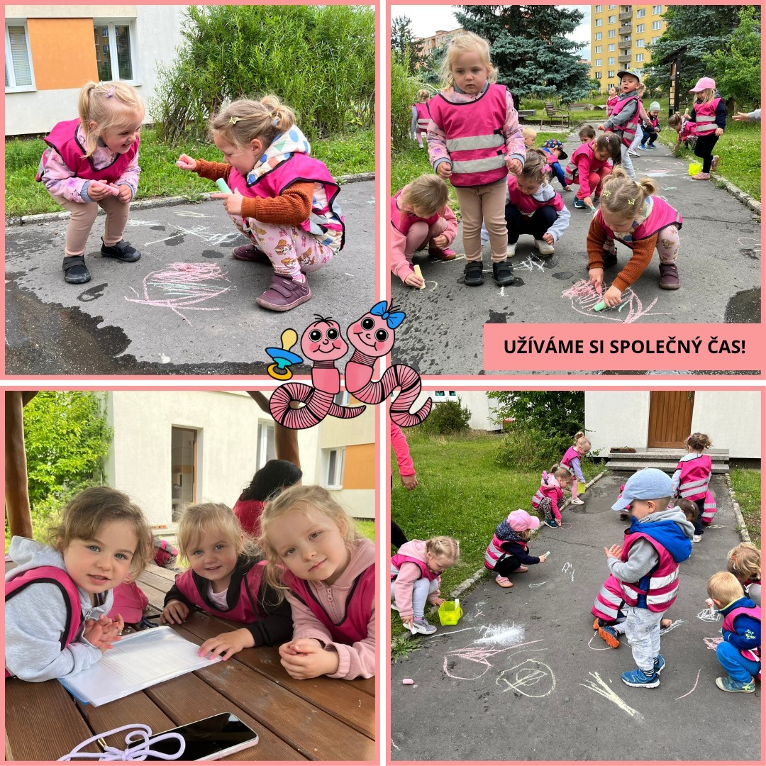 V červnu jsme si užívali krásného počasí, a proto jsme většinu času trávili venku. Děti se zapojovaly do různých her a tvořivých aktivit a navštívili jsme také dětské hřiště, kde si krásně hrály a objevovaly nové možnosti pohybu.