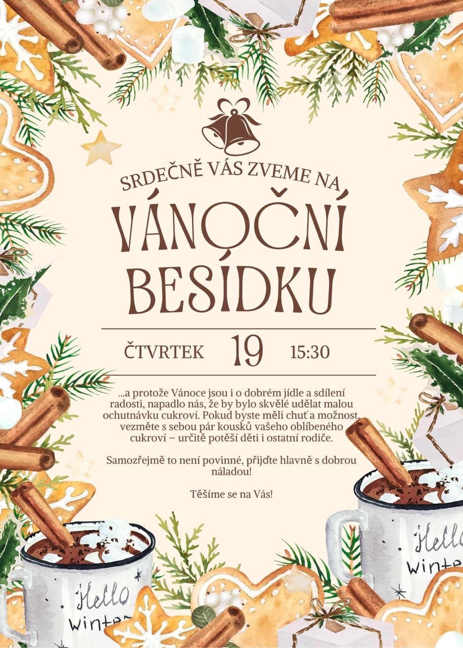 Blížily se Vánoce, a tak jsme s dětmi pekli a zdobili perníčky, což nás všechny moc bavilo. Naučili jsme se vánoční koledy a navštívili nás Mikuláš a čert. Dětská skupina zažila svou první Vánoční besídku, krásnou akci, kde jsme se mohli sejít, popovídat si a ochutnat spoustu dobrot a vánočního cukroví. Děkujeme!