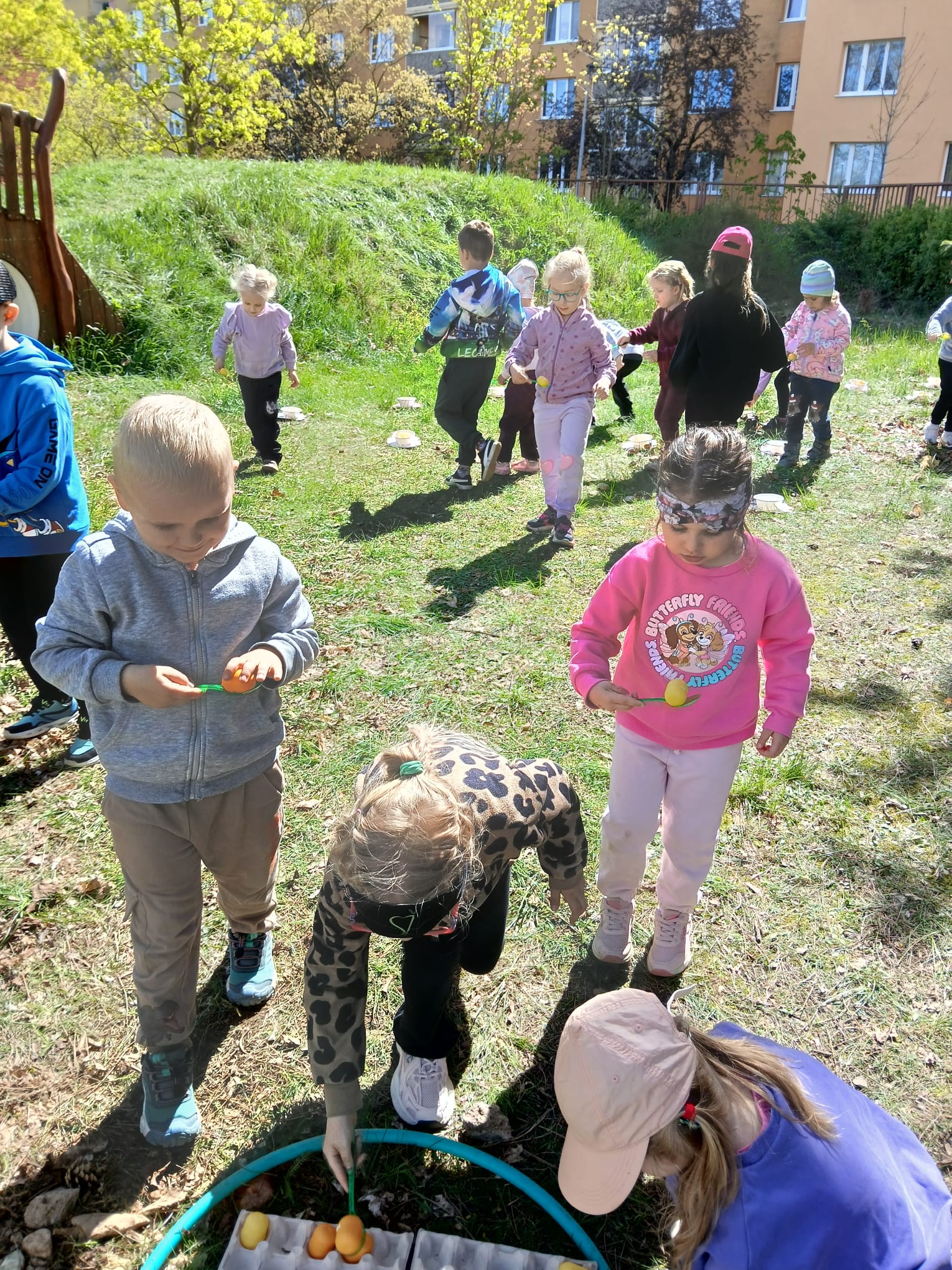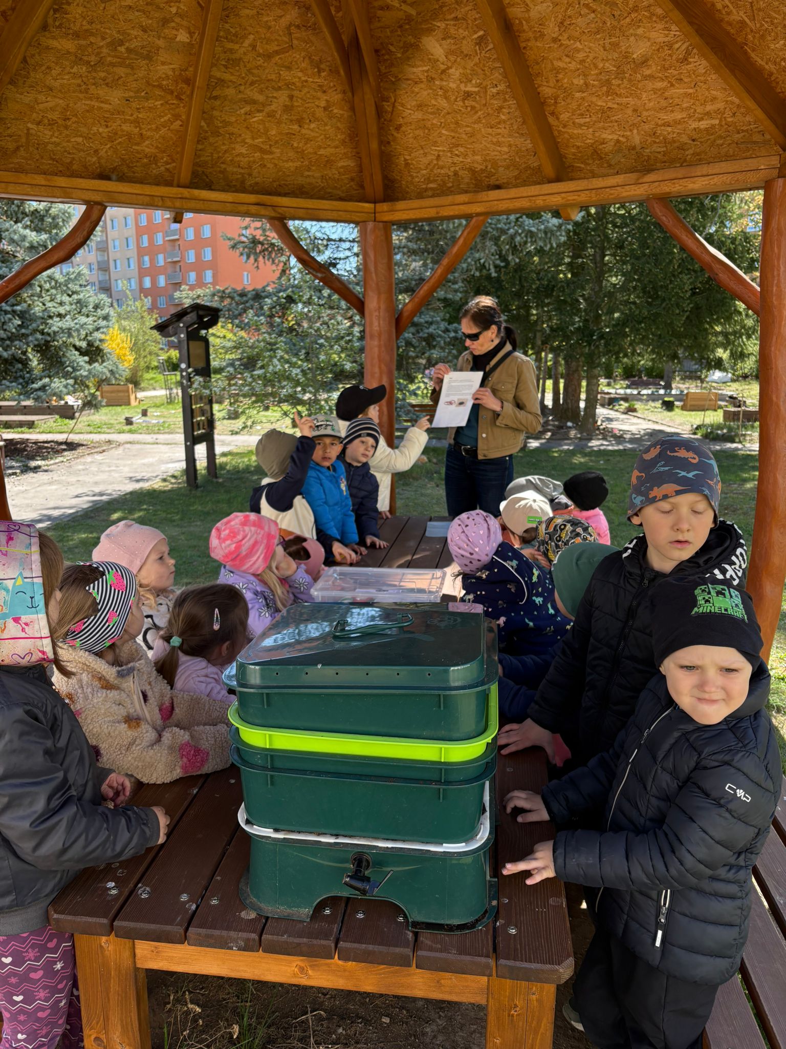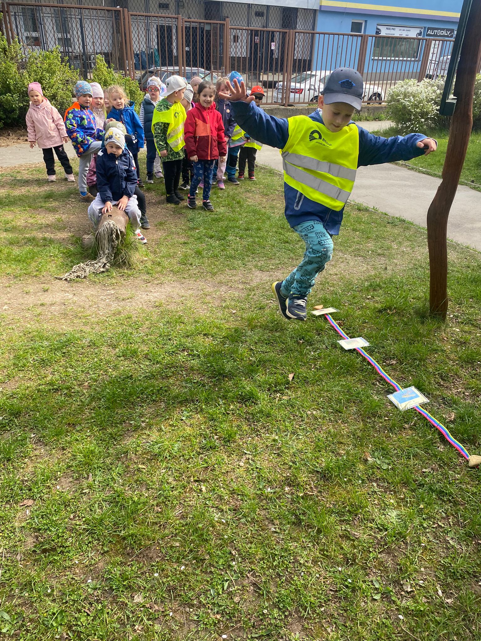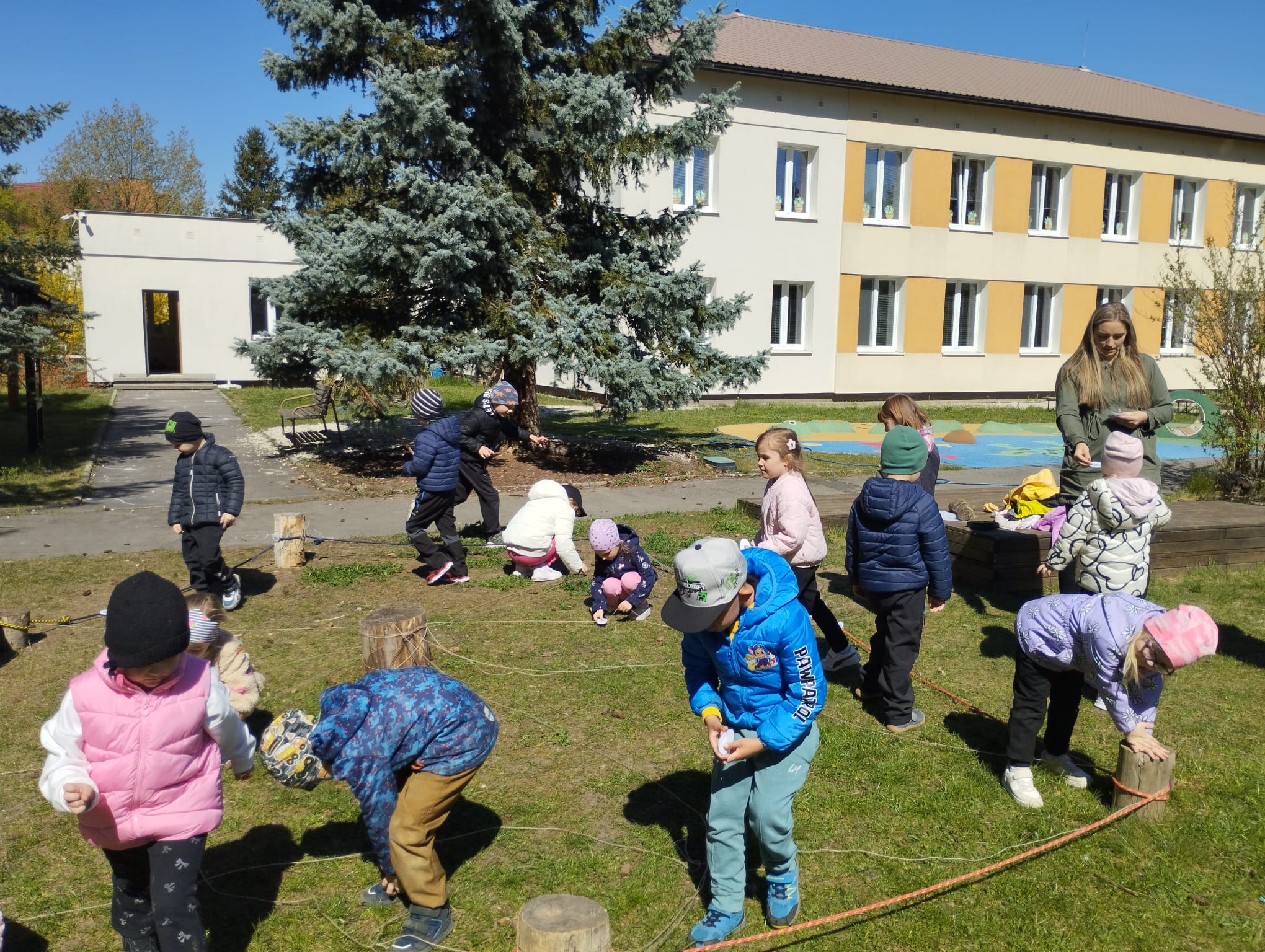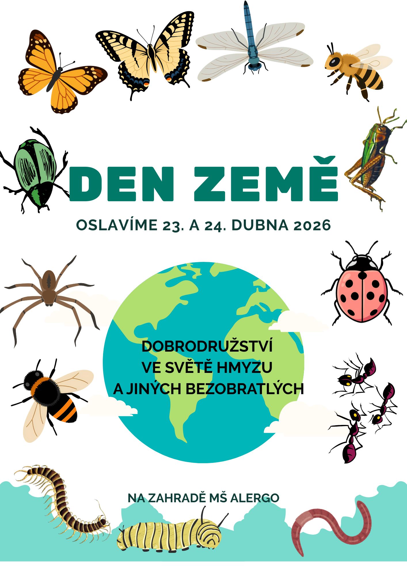 Na den Země jsme letos zažili dobrodružství ve světě hmyzu a jiných bezobratlých. Děti hledaly dvojice obrázků hmyzu na louce, vyráběly hmyzí domečky, sbíraly pyl z květů jako včely, stavěly mraveniště, prohlížely vermikompostér a v něm žížaly, prolézaly pavučinu a sbíraly mouchy jako pavouci, poznávaly lesní obyvatele hmatem, vybarvovaly motýli a létaly s nimi, čichaly k bylinkám a přírodním esencím a porovnávaly svůj skok s cvrčky, sarančaty a kobylkami. Na každém stanovišti se zároveň dozvěděly nějakou zajímavost z říše hmyzu. Hmyz má totiž pro život na Zemi naprosto nepostradatelný význam, opyluje většinu rostlin, rozkládá organickou hmotu a tvoří základ potravního řetězce pro další živočichy. A toto povědomí je potřeba dětem přiměřeně vštěpovat. Oslava dne Země probíhala v prostředí naší školní zahrady ve čtvrtek a pátek 23. a 24. dubna 2026 a zúčastnilo se jí přes 200 dětí – z naší mateřské školy a dětské skupiny Žížalky, z Mateřské školy Otokara Březiny a Mateřské školy Studentská se svými učitelkami.