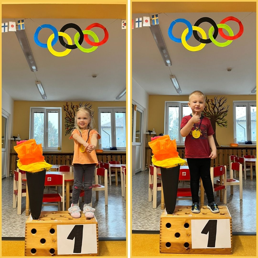 V únoru jsme se věnovali poznávání světa kolem nás i lidského těla. Začali jsme tématem zimní olympiády, při kterém jsme si povídali o olympijských kruzích, sportech a medailích. Uspořádali jsme si vlastní olympijské disciplíny přímo ve třídě a zakončili je slavnostním vyhlášením vítězů. Povídali jsme si o lidském těle, o smyslových orgánech a zkoušeli, jak funguje zrak, sluch, chuť i hmat. Objevovali jsme také vnitřní orgány, poslouchali srdíčko stetoskopem a seznámili se s kostrou, kostmi i svaly. Děti si vše upevňovaly hravou formou – pohybovými hrami, výtvarnými činnostmi i malou „keramikou“.