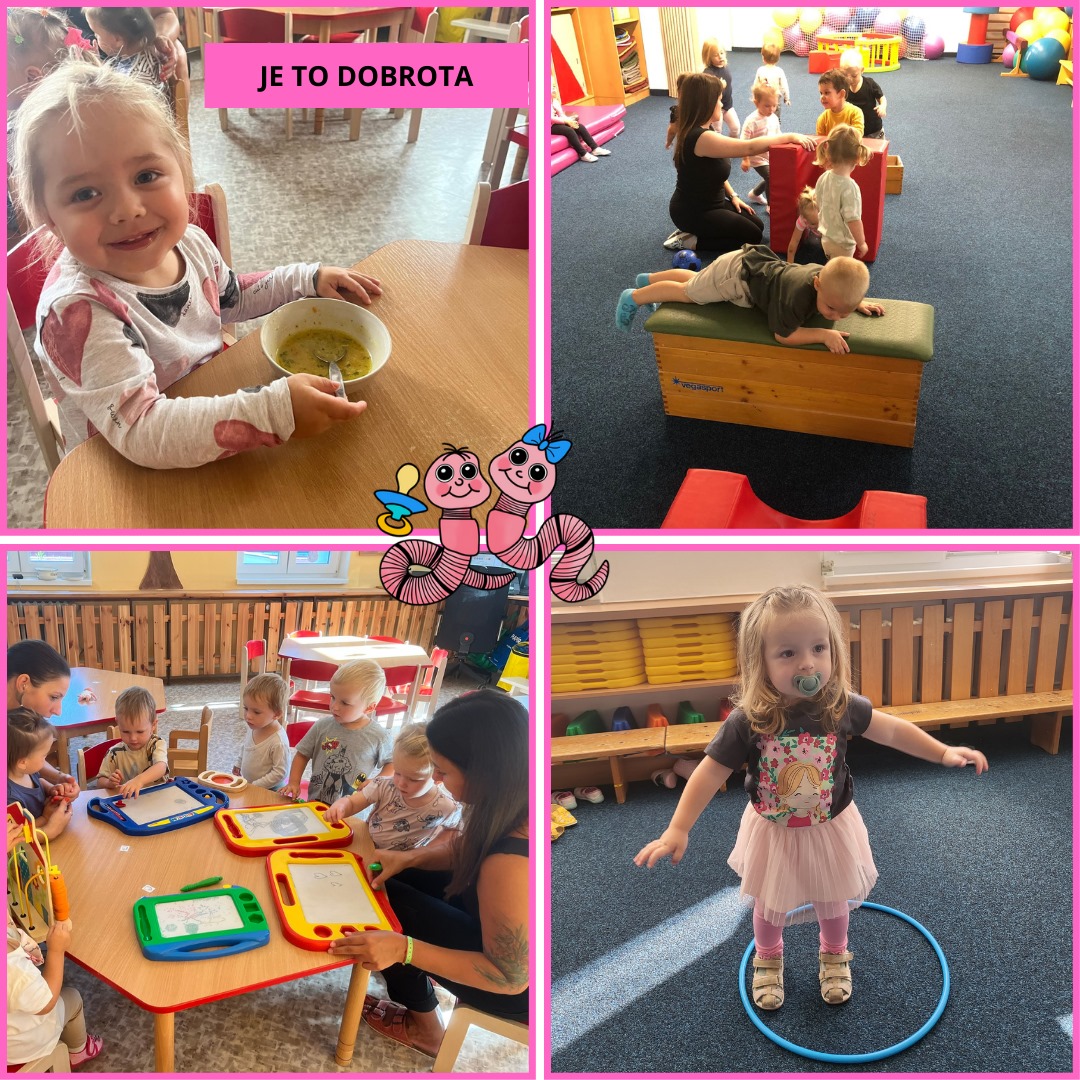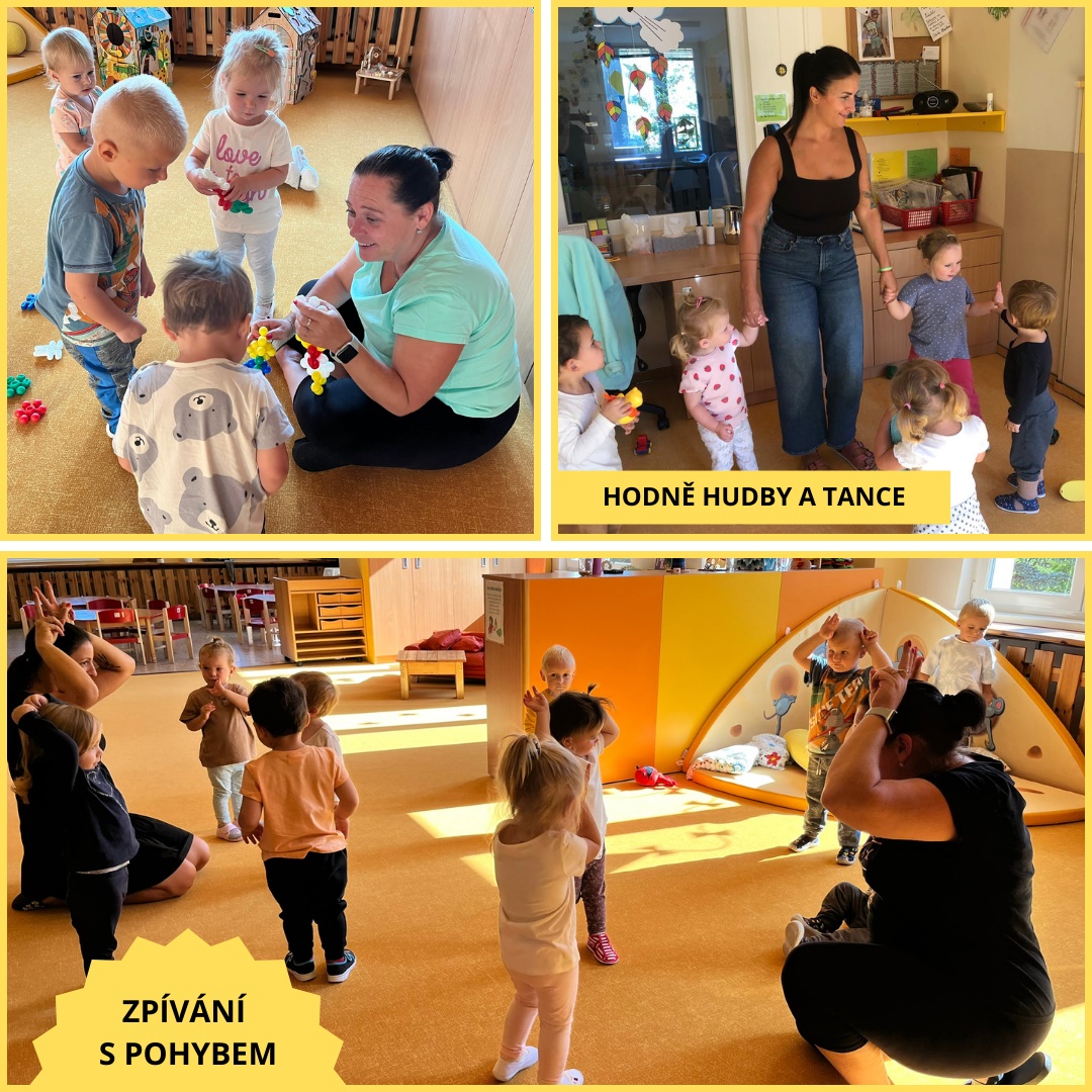 V září jsme se věnovali adaptaci nových dětí ve skupině. Děti měly prostor pro volnou hru, aby mohly poznávat prostředí, seznamovat se s pečujícími osobami a budovat důvěru. Zároveň se učily poznávat nové kamarády, přizpůsobovat se dennímu režimu a postupně se zapojovat do společných aktivit. Adaptace probíhala hravě a bez stresu, s cílem, aby se děti cítily bezpečně a spokojeně.